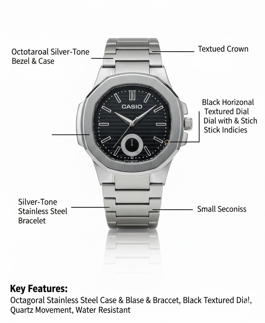 - Case: Octagonal Silver-Tone Stainless Steel