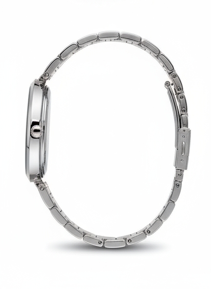 • Integrated Bracelet: The seamless silver-tone link bracelet, inspired by a “braless bracelet” design, wraps gently around the wrist, ensuring a comfortable and refined fit — perfect for both professional and social occasions.