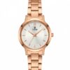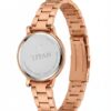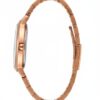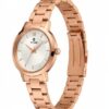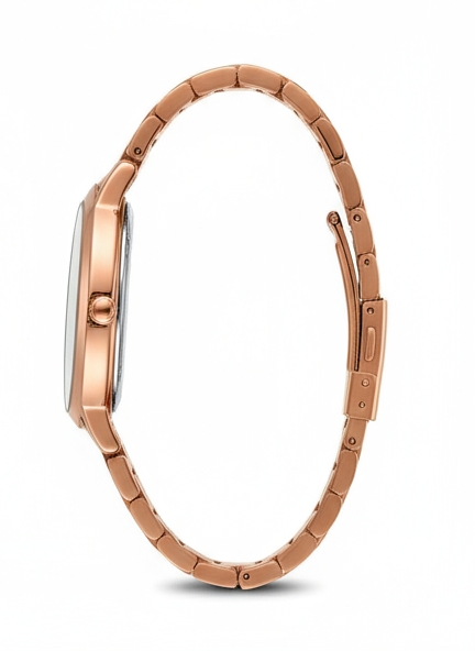 The dial reflects a commitment to functional elegance. It features a clean, simple layout, ensuring high legibility at a glance. The minimalist face is accentuated by matching rose gold stick indices and sleek hands, which stand out sharply against the background, emphasizing precision without sacrificing style. The case is sized specifically for a comfortable and refined fit on a woman’s wrist.